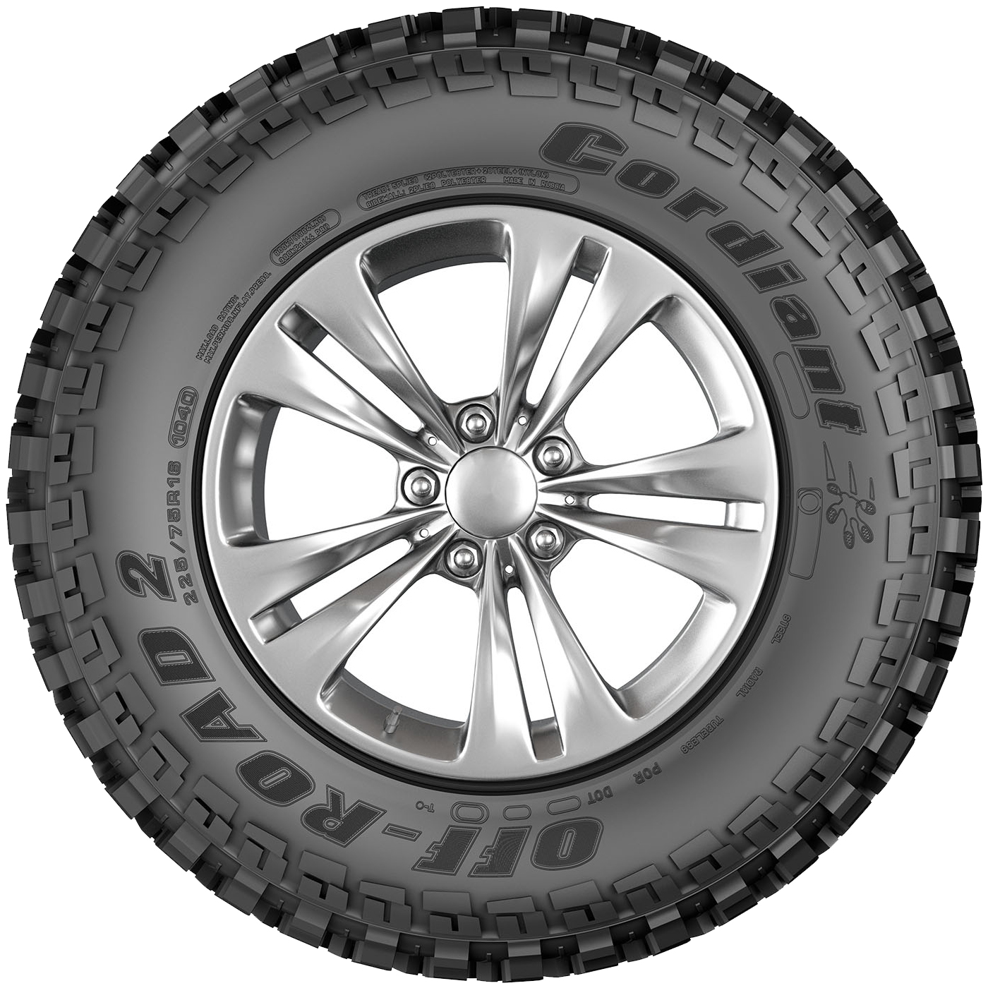 Рисунок Cordiant Off-Road 2 разработан с учетом всех нюансов движения по бездорожью. Узкий центр уменьшает сопротивление на вязком грунте, позволяя быстрее добраться до твердой поверхности. Острые края блоков создают дополнительное сцепление, особенно на гравийных покрытиях.