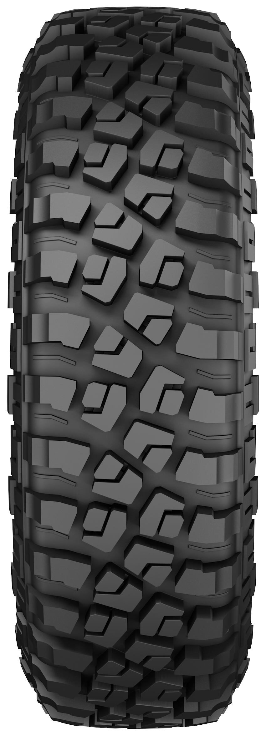 Грунтозацепы разной высоты, расположенные по бокам, улучшают тяговые возможности при боковом скольжении. Они помогают автомобилю выбраться из колеи, создавая дополнительный упор. Широкие продольно-поперечные канавки способствуют лучшему распределению нагрузки, предотвращают накопление грязи, воды или песка в профиле. Благодаря массивным сегментам, автошина выдерживает длительные нагрузки на твердых покрытиях, сохраняя сцепные характеристики.