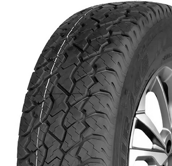 Рисунок протектора Mirage MR-AT172 выполнен по симметричной ненаправленной схеме. Это придает шине универсальность, долговечность, высокую проходимость. Широкие многоугольные блоки создают максимальную площадь контакта, увеличивают сцепление. Поперечные зигзагообразные ламели усиливают захват на скользких поверхностях. Глубокие продольные канавки оперативно отводят влагу, грязь, снег, предотвращая пробуксовку. Жесткие плечевые зоны стабилизируют поведение в поворотах, защищают боковины от ударных нагрузок. Усиленный центральный реберный пояс придает курсовую устойчивость, снижает вибрации при движении по шоссе.